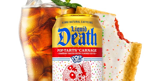 The two brands have unveiled their new collaboration: a limited-edition iced tea drink called Pop-Tarts Carnage. The drink tastes like Frosted Strawberry Pop-Tarts and comes in Liquid Death’s iconic death metal can.